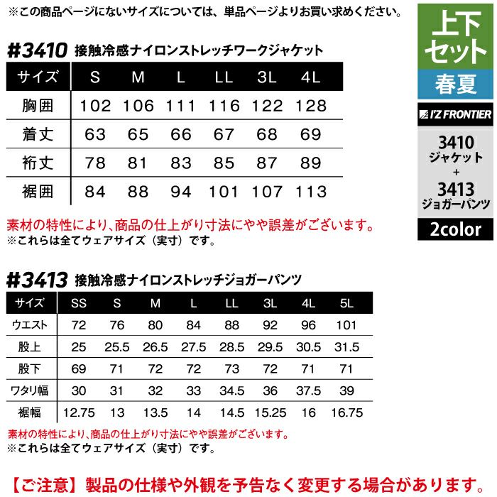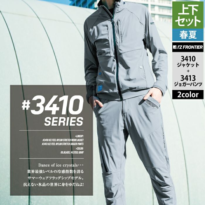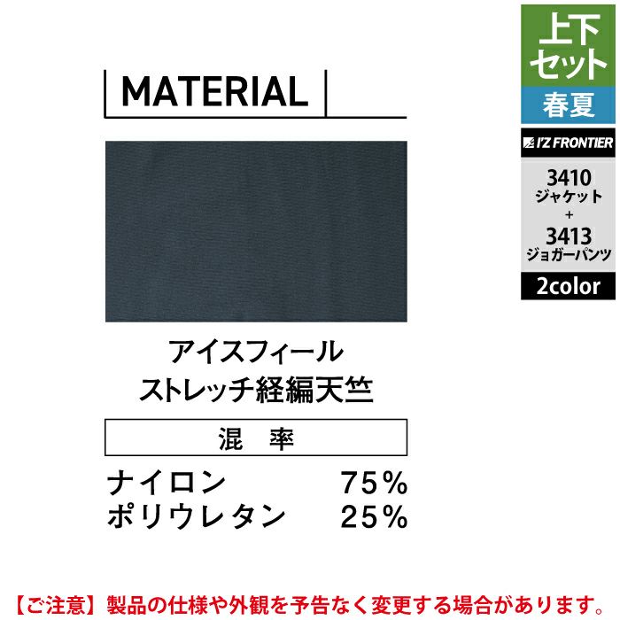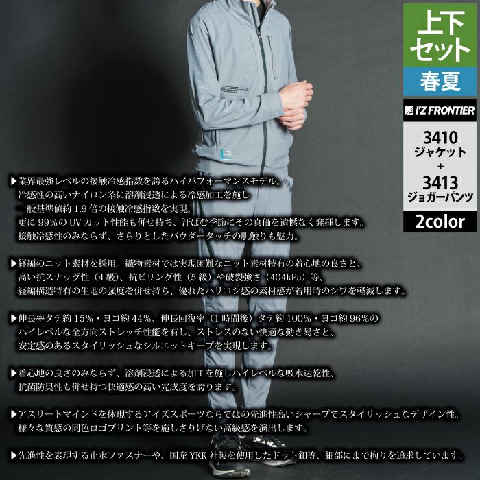 アイズフロンティア 作業服 作業着 上下セット アイズフロンティア 作業服 上下セット 3410 アイスフィールストレッチワークジャケットS-3L と 3413 アイスフィールストレッチジョガーパンツ SS-3L 春夏用