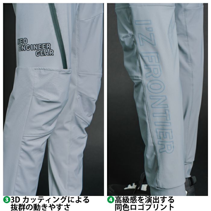 アイズフロンティア 作業服 上下セット 7570 ジャケット と 7572 カーゴパンツ ストレッチ 3Dパターン シャープ ライダース タフ 春夏秋冬