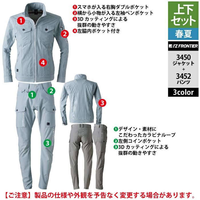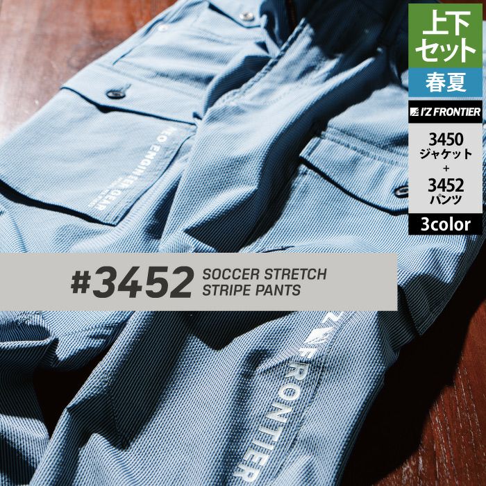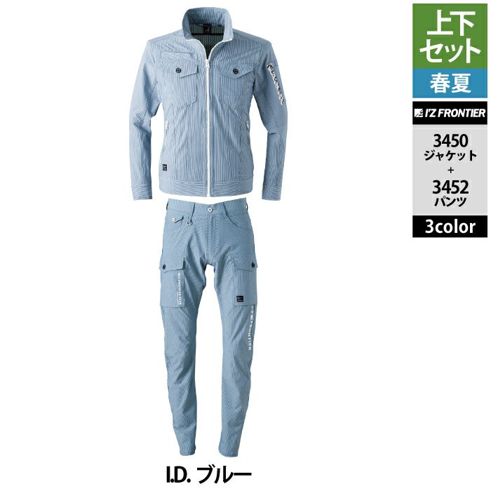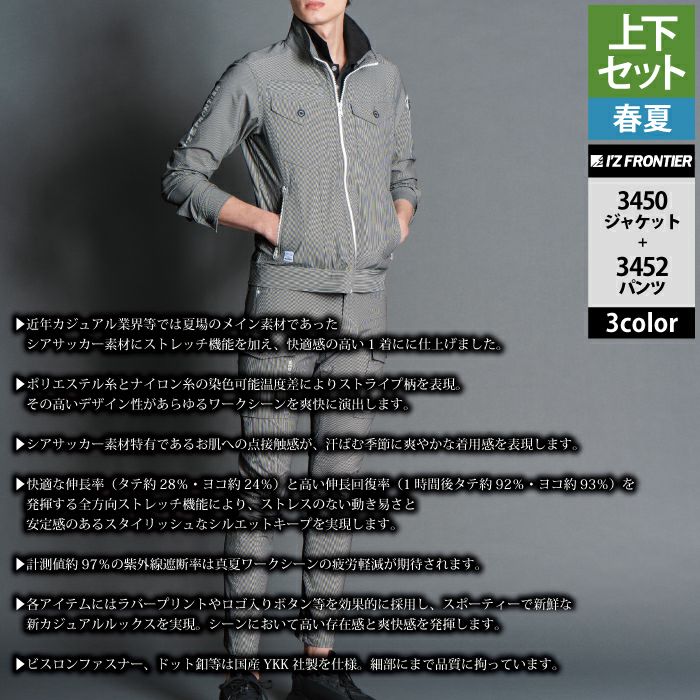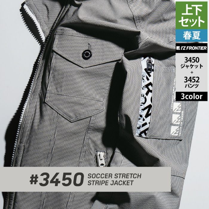 アイズフロンティア 作業服 作業着 上下セット アイズフロンティア 作業服 上下セット 3450 サッカーストレッチストライプワークジャケット と 3452 サッカーストレッチストライプジョガーパンツ 春夏用