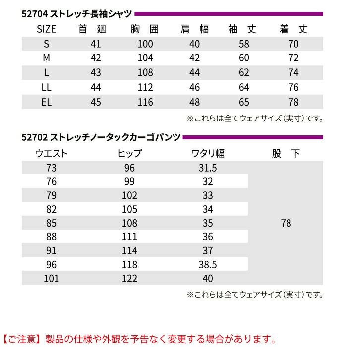 自重堂 作業服 作業着 作業ズボン 自重堂 作業服 上下セット 52804 ストレッチ長袖シャツ と 52802 ストレッチノータックカーゴパンツ S-LL 秋冬用 かっこいい おしゃれ 作業着