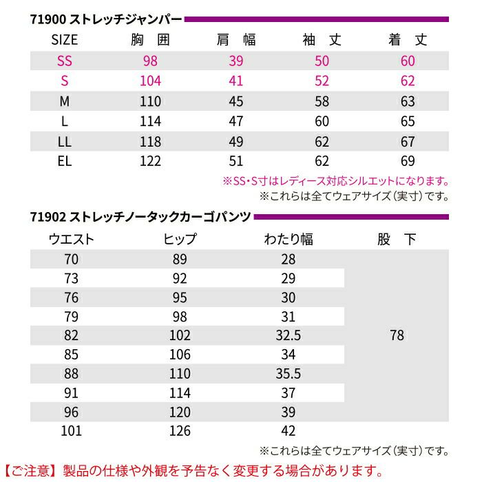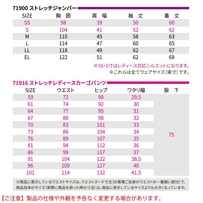 自重堂 作業服 作業着 作業ズボン 自重堂 作業服 上下セット 71900 ストレッチジャンパー と 71916 ストレッチレディースカーゴパンツ SS-LL 秋冬用 かっこいい おしゃれ 作業着