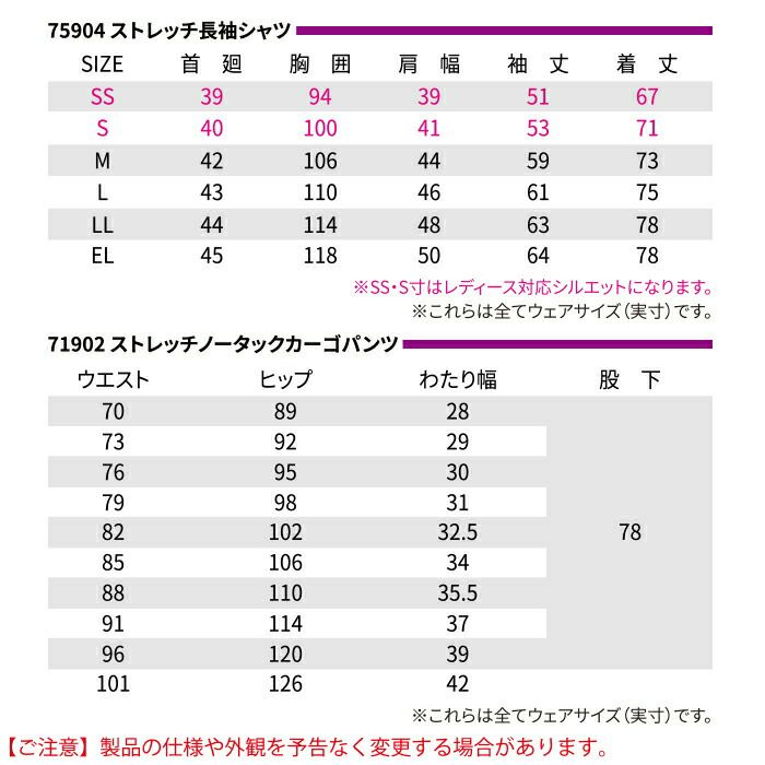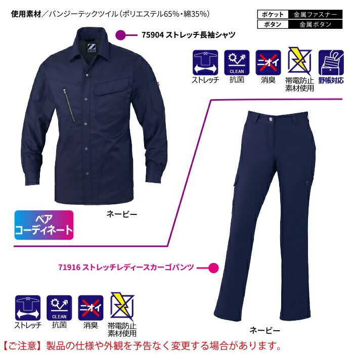 自重堂 作業服 作業着 作業ズボン 自重堂 作業服 上下セット 75904 ストレッチ長袖シャツ と 71916 ストレッチレディースカーゴパンツ SS-LL 秋冬用 かっこいい おしゃれ 作業着