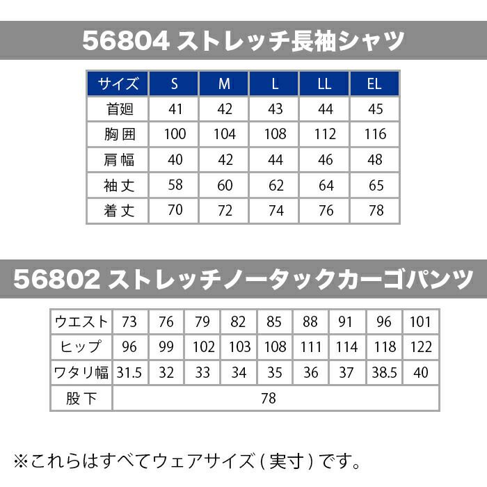 自重堂 作業服 作業着 作業ズボン 自重堂 作業服 上下セット 56804 ストレッチ長袖シャツ と 56802 ストレッチノータックカーゴパンツ S-LL オールシーズン かっこいい おしゃれ 作業着