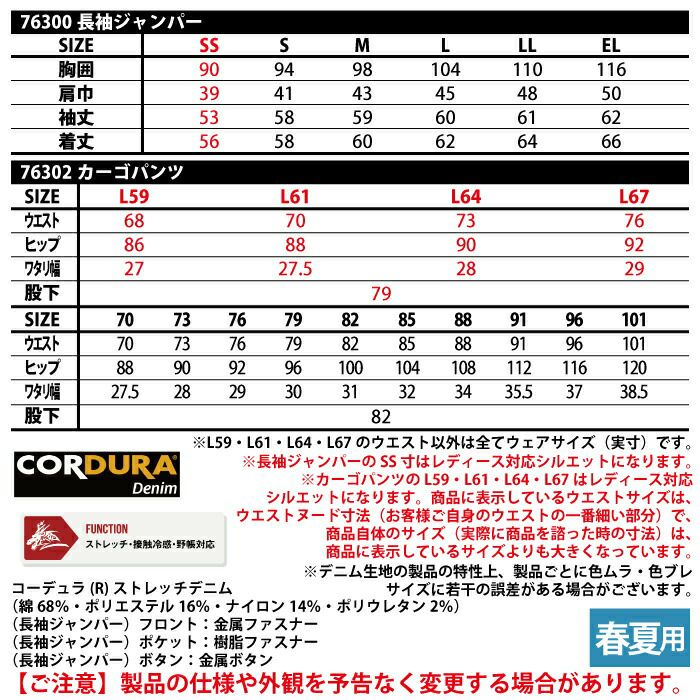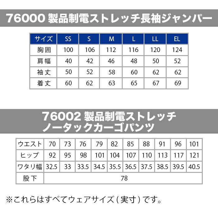 自重堂 作業服 作業着 作業ズボン 自重堂 作業服 上下セット 76500 製品制電ストレッチ長袖ジャンパーS-EL と 76502 製品制電ストレッチノータックカーゴパンツ 70-101 春夏用 作業着