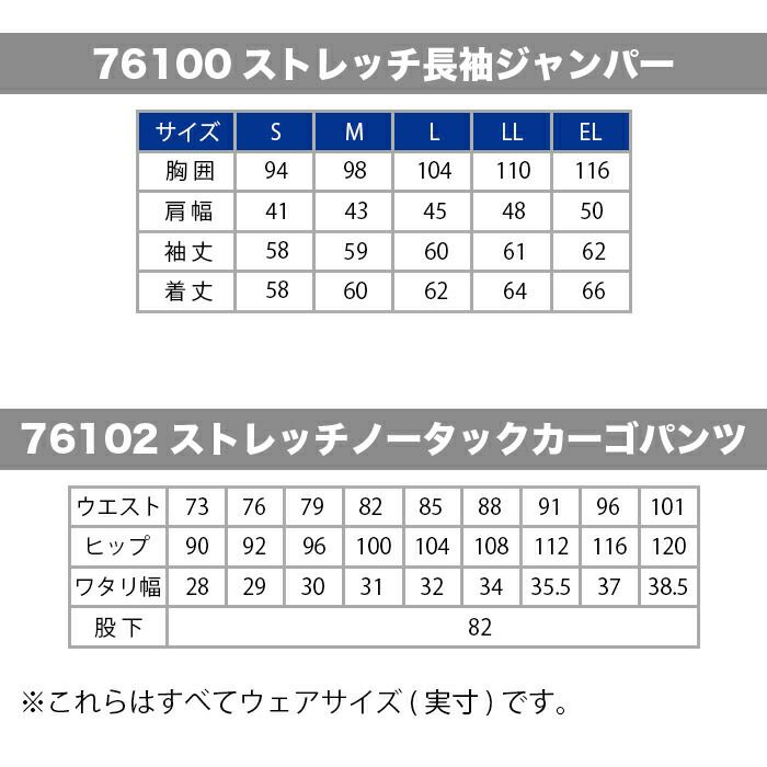 自重堂 作業服 作業着 作業ズボン 自重堂 作業服 上下セット 76100 ストレッチ長袖ジャンパー と 76102 ストレッチノータックカーゴパンツ S-LL 春夏用 かっこいい おしゃれ 作業着