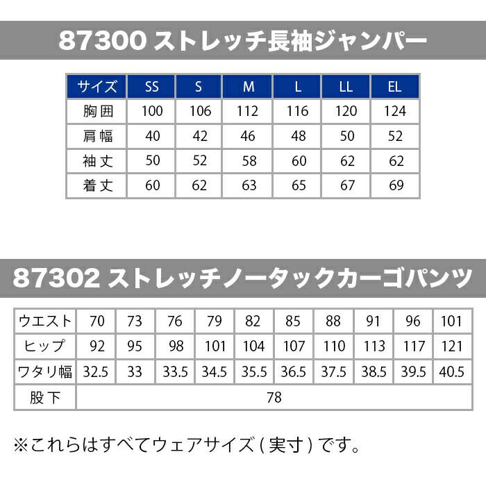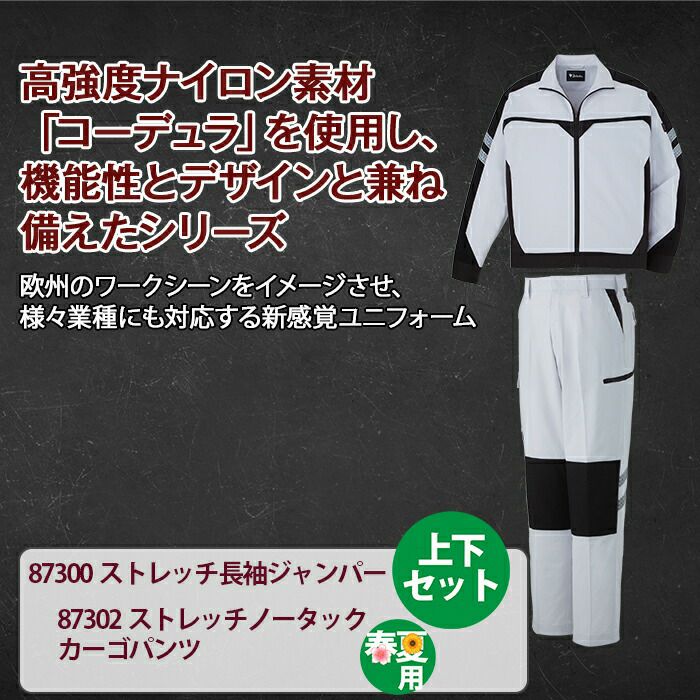 自重堂 作業服 作業着 作業ズボン 自重堂 作業服 上下セット 87300 ストレッチ長袖ジャンパー と 87302 ストレッチノータックカーゴパンツ SS-LL オールシーズン おしゃれ 作業着