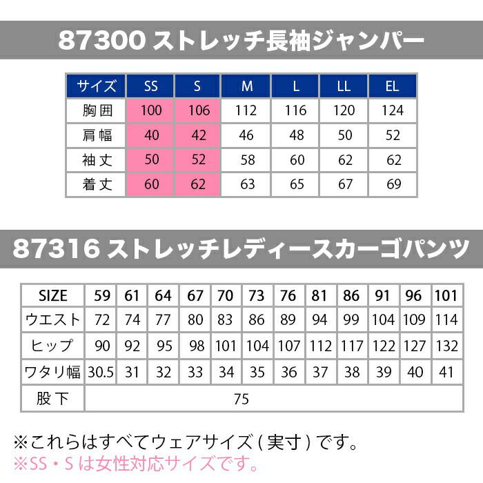 自重堂 作業服 作業着 作業ズボン 自重堂 作業服 上下セット 87300 ストレッチ長袖ジャンパー と 87316 ストレッチレディースカーゴパンツ(裏付) SS-LL オールシーズン おしゃれ 作業着