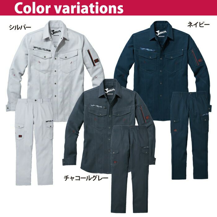 自重堂 JAWIN ジャウィン 作業服 作業着 自重堂 JAWIN ジャウィン 作業服 上下セット 57204 ストレッチ長袖シャツSS-EL と 57202 ストレッチノータックカーゴパンツ L64-101 春夏用 作業着