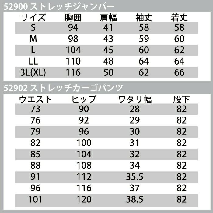 自重堂 作業服 作業着 作業ズボン 自重堂 作業服 上下セット 52900 ストレッチジャンパー と 52902 ストレッチカーゴパンツ S-LL 秋冬用 かっこいい おしゃれ ズボン 作業着