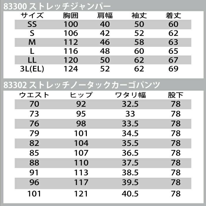 自重堂 作業服 作業着 作業ズボン 自重堂 作業服 上下セット 83300 ストレッチジャンパー と 83302 ストレッチノータックカーゴパンツ SS-LL 秋冬用 かっこいい おしゃれ 作業着