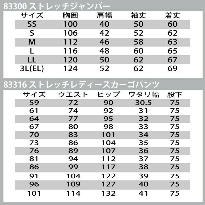 自重堂 作業服 作業着 作業ズボン 自重堂 作業服 上下セット 83300 ストレッチジャンパー と 83316 ストレッチレディースカーゴパンツ SS-LL 秋冬用 かっこいい おしゃれ 作業着