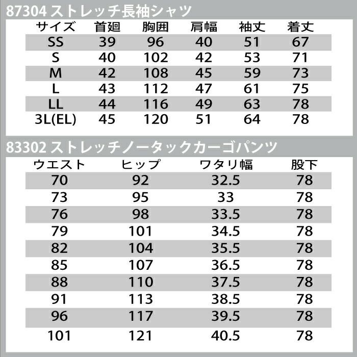 自重堂 作業服 作業着 作業ズボン 自重堂 作業服 上下セット 87304 ストレッチ長袖シャツ と 83302 ストレッチノータックカーゴパンツ SS-LL 秋冬用 かっこいい おしゃれ 作業着