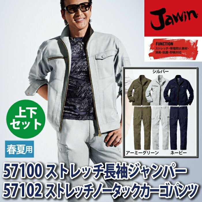 自重堂 作業服 作業着 作業ズボン 自重堂 作業服 上下セット 57100 ストレッチ長袖ジャンパー と 57102 ストレッチノータックカーゴパンツ S-LL 春夏用 かっこいい おしゃれ 作業着