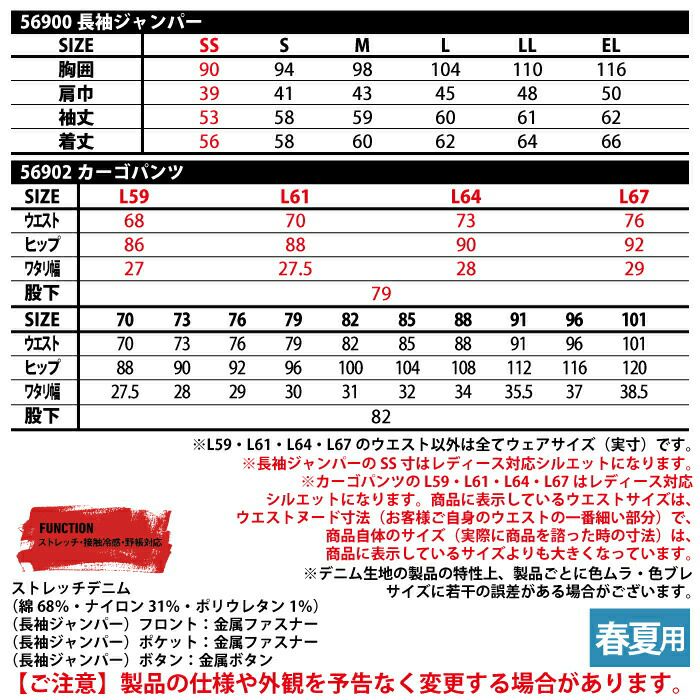 自重堂 作業服 作業着 作業ズボン 自重堂 作業服 上下セット 56900 ストレッチ長袖ジャンパー と 56902 ストレッチノータックカーゴパンツ S-LL 春夏用 かっこいい おしゃれ 作業着