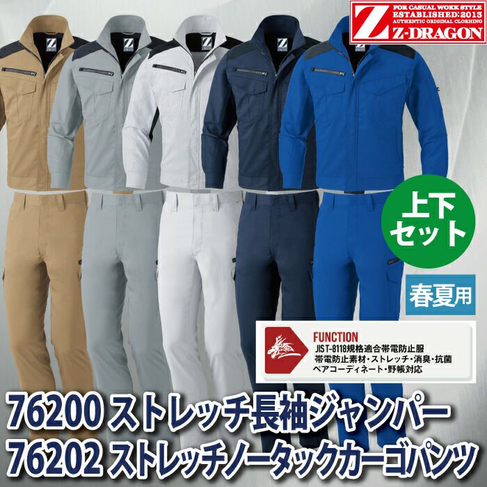 自重堂 Z-DRAGON 作業服 作業着 上下セット 自重堂 作業服 上下セット Z-DRAGON ジードラゴン 76300 ストレッチジャンパー と 76302 ストレッチカーゴパンツ SS-LL 春夏用 かっこいい おしゃれ 作業着
