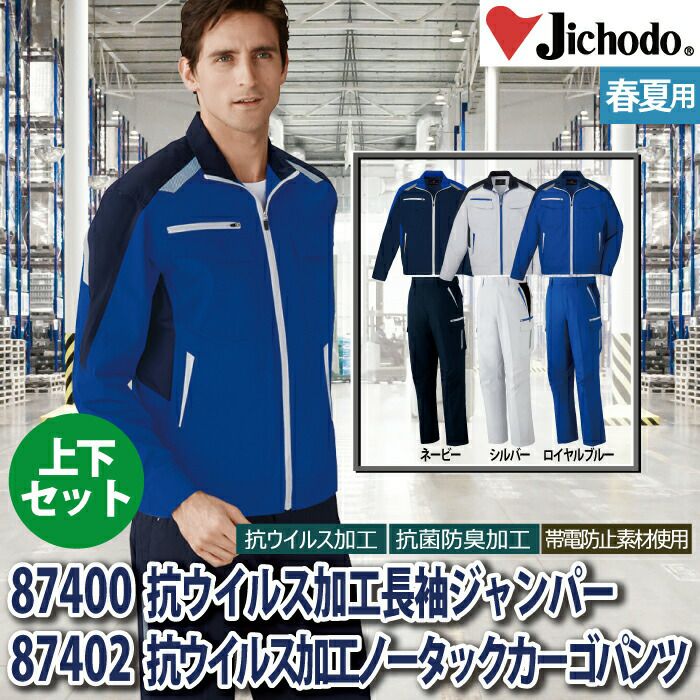 自重堂 作業服 作業着 作業ズボン 自重堂 作業服 上下セット 87400 抗ウイルス加工長袖ジャンパー と 87402 抗ウイルス加工ノータックカーゴパンツ SS-LL 春夏用 おしゃれ 作業着