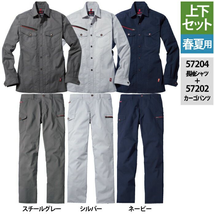 自重堂 作業服 作業着 作業ズボン 自重堂 作業服 上下セット 57000 ストレッチ長袖ジャンパー と 57002 ストレッチノータックカーゴパンツ SS-LL 春夏用 かっこいい おしゃれ 作業着