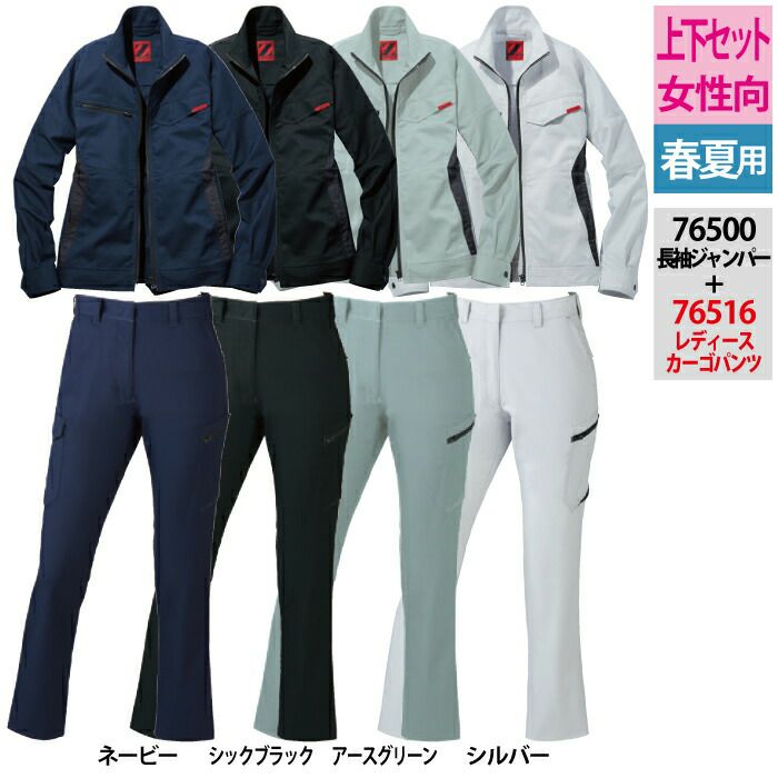 自重堂 作業服 作業着 作業ズボン 自重堂 作業服 上下セット 76500 ストレッチ長袖ジャンパーS-EL と 76516 ストレッチレディースカーゴパンツ(裏付) 59-101 女性用 春夏用 作業着