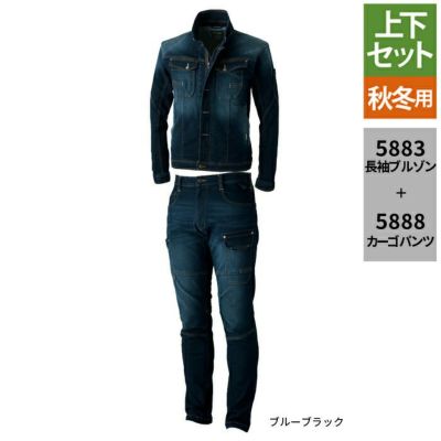 桑和 SOWA 作業服 上下セット 5883 長袖ブルゾンM-3L と 5888 カーゴパンツ S-3L 秋冬用 かっこいい おしゃれ 作業着 ズボン