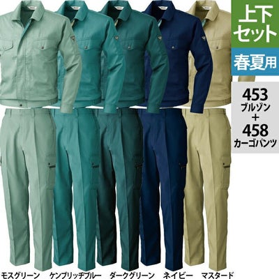 桑和 SOWA 作業服 上下セット 453 長袖ブルゾンM-3L と 458 カーゴパンツ S-3L 春夏用 かっこいい おしゃれ 作業着 ズボン