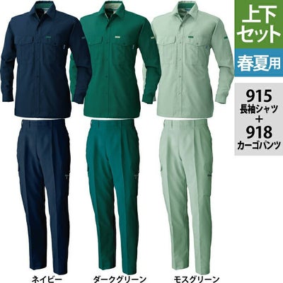 桑和 SOWA 作業服 上下セット 915 長袖シャツM-3L と 918 カーゴパンツ 70-100 春夏用 かっこいい おしゃれ 作業着 ズボン