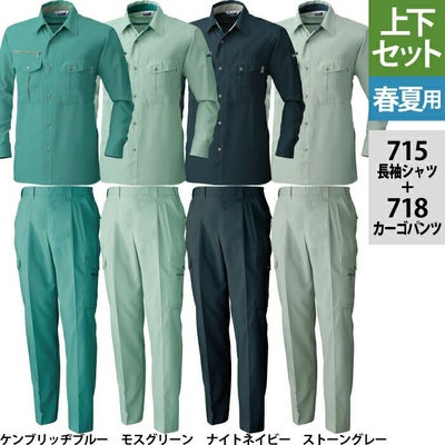 桑和 SOWA 作業服 上下セット 715 長袖シャツM-3L と 718 カーゴパンツ S-3L 春夏用 かっこいい おしゃれ 作業着 ズボン