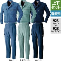 桑和 SOWA 作業服 上下セット 923 エコ長袖ブルゾンS-3L と 928 エコカーゴパンツ 70-100 春夏用 かっこいい おしゃれ 作業着 ズボン