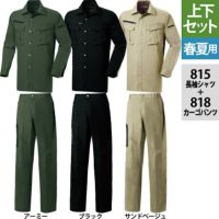 桑和 SOWA 作業服 上下セット 815 長袖シャツSS-3L と 818 カーゴパンツ 70-100 春夏用 かっこいい おしゃれ 作業着 ズボン
