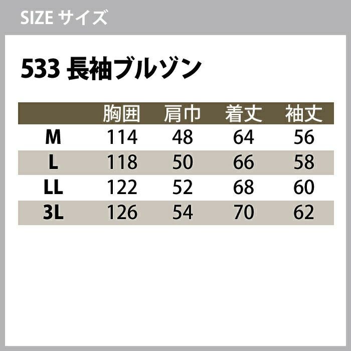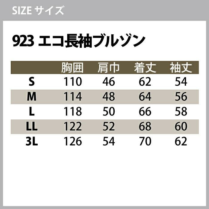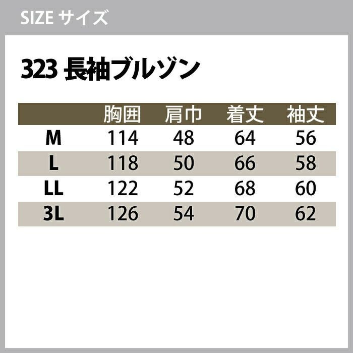 323長袖ブルゾン サイズ