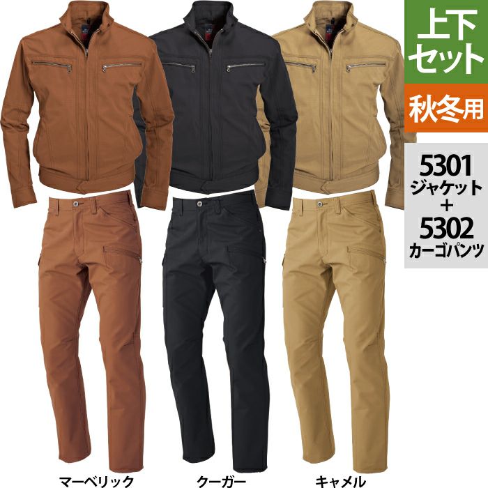 バートル BURTLE 作業着 上下セット 5301ジャケットと5302カーゴパンツ M-LL 作業服 おしゃれ 秋冬