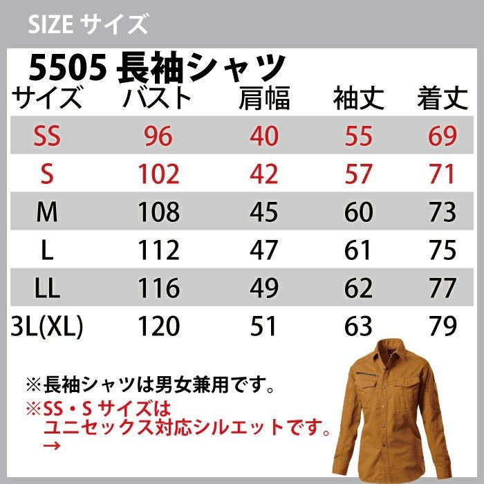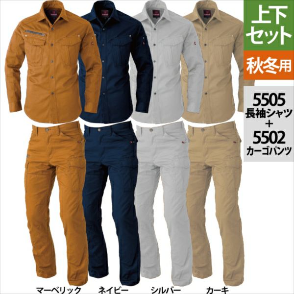 作業着 作業服 ブルゾン バートル BURTLE 作業着 上下セット 5505長袖シャツと5502カーゴパンツ SS-LL 作業服 おしゃれ 秋冬