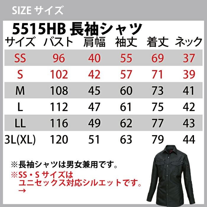 作業着 作業服 ブルゾン バートル BURTLE 作業着 上下セット 5515HB長袖シャツと5512HBカーゴパンツ SS-LL 作業服 おしゃれ