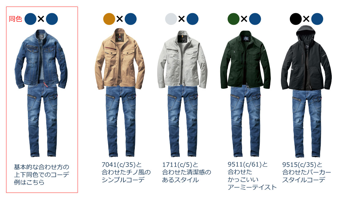 バートル9511、9501シリーズでの同一シリーズでのコーディネート