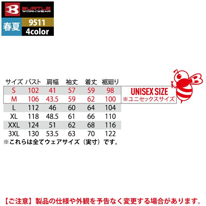 ※バートル9511シリーズは春夏、9501シリーズは秋冬シーズン対応になります