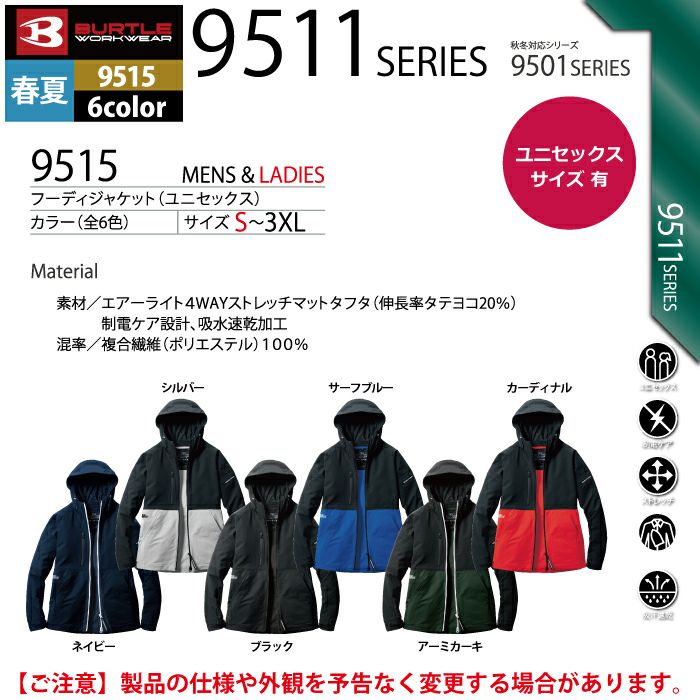 ※バートル9511シリーズは春夏、9501シリーズは秋冬シーズン対応になります