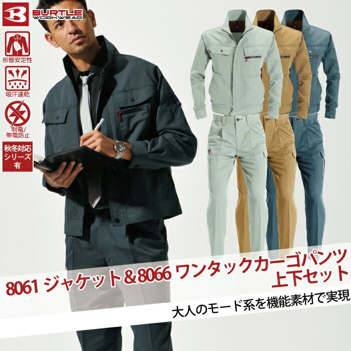 作業服 作業着 バートル ブルゾン 春夏用 バートル BURTLE 作業着 上下セット 8061 ジャケット と 8066 ワンタックカーゴパンツ S-LL 作業服 おしゃれ 春夏