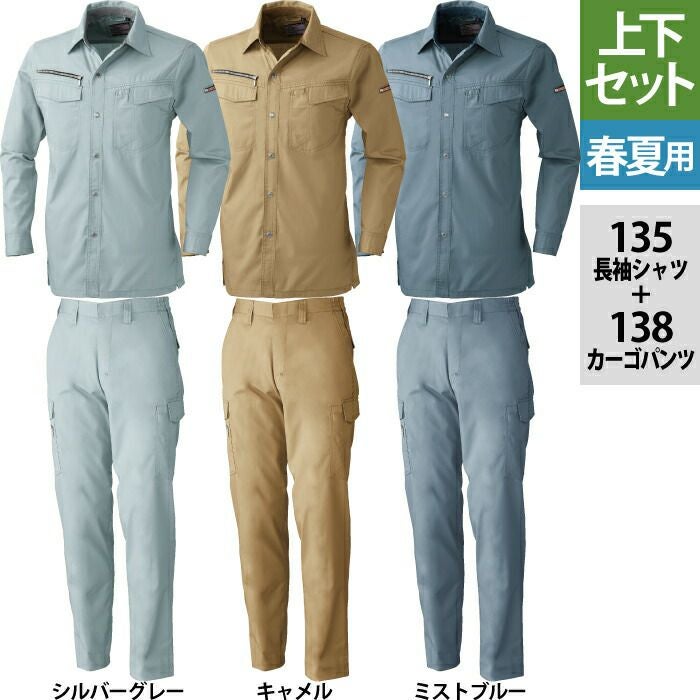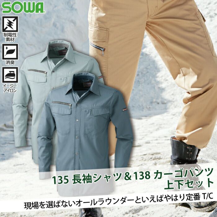 桑和 SOWA 作業服 作業着 作業ズボン 桑和 SOWA 作業服 上下セット 135 長袖シャツSS-3L と 138 カーゴパンツ S-3L 春夏用 かっこいい おしゃれ 作業着 ズボン