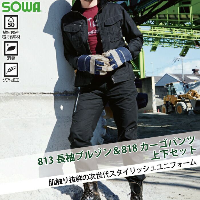 桑和 SOWA 作業服 作業着 作業ズボン 桑和 SOWA 作業服 上下セット 813 長袖ブルゾンSS-3L と 818 カーゴパンツ 70-100 春夏用 かっこいい おしゃれ 作業着 ズボン