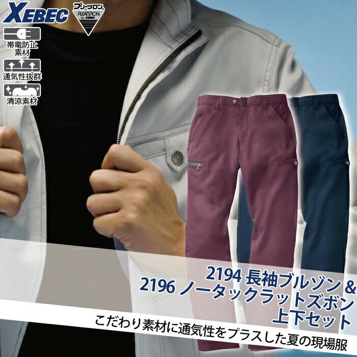 ジーベック XEBEC 作業服 作業着 作業ズボン ジーベック XEBEC 作業服 上下セット 2194 長袖ブルゾン と 2196 ノータックラットズボン M-LL カーゴパンツ 春夏用 作業着 ズボン