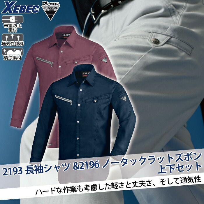 ジーベック XEBEC 作業服 作業着 作業ズボン ジーベック XEBEC 作業服 上下セット 2193 長袖シャツ と 2196 ノータックラットズボン M-LL カーゴパンツ 春夏用 作業着 ズボン