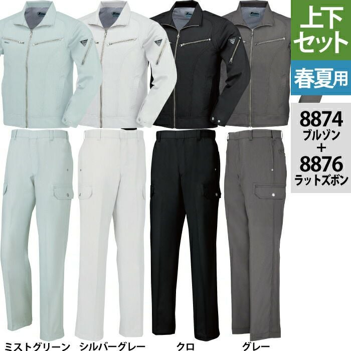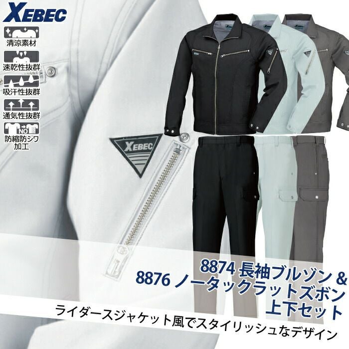 ジーベック XEBEC 作業服 作業着 作業ズボン ジーベック XEBEC 作業服 上下セット 8874 長袖ブルゾン と 8876 ノータックラットズボン S-LL カーゴパンツ 春夏用 作業着 ズボン