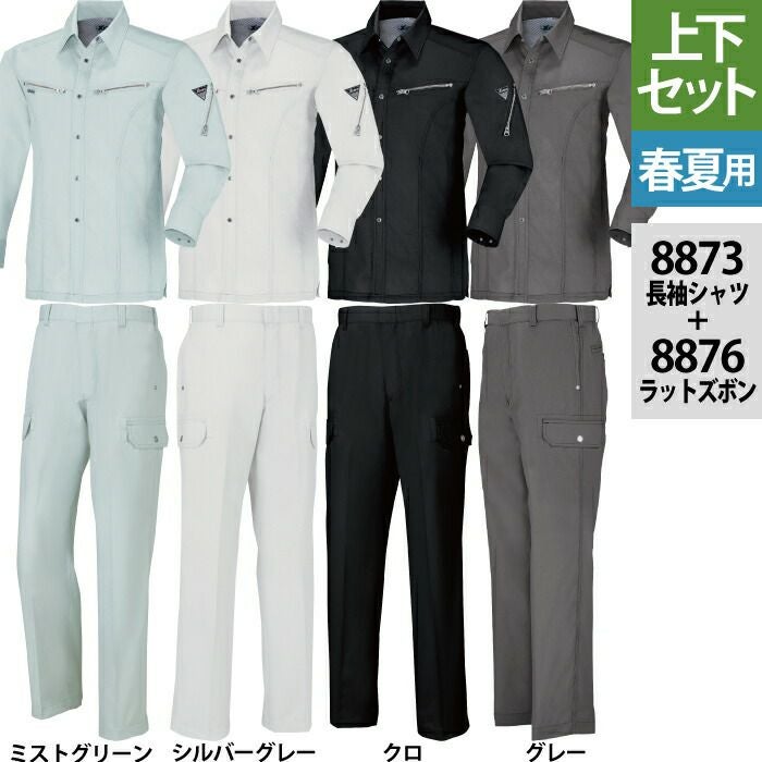 ジーベック XEBEC 作業服 作業着 作業ズボン ジーベック XEBEC 作業服 上下セット 8873 長袖シャツ と 8876 ノータックラットズボン S-LL カーゴパンツ 春夏用 作業着 ズボン