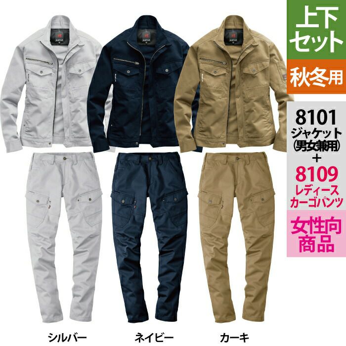 作業服 秋冬用 バートル 上下セット 8101 ジャケット(ユニセックス)SS-3L と 8109 レディースカーゴパンツ S-L 作業着 作業ズボン 女性用