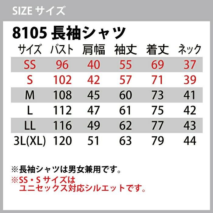 作業服 秋冬用 バートル 上下セット 8105 長袖シャツ(ユニセックス)SS-3L と 8109 レディースカーゴパンツ S-L 作業着 作業ズボン 女性用