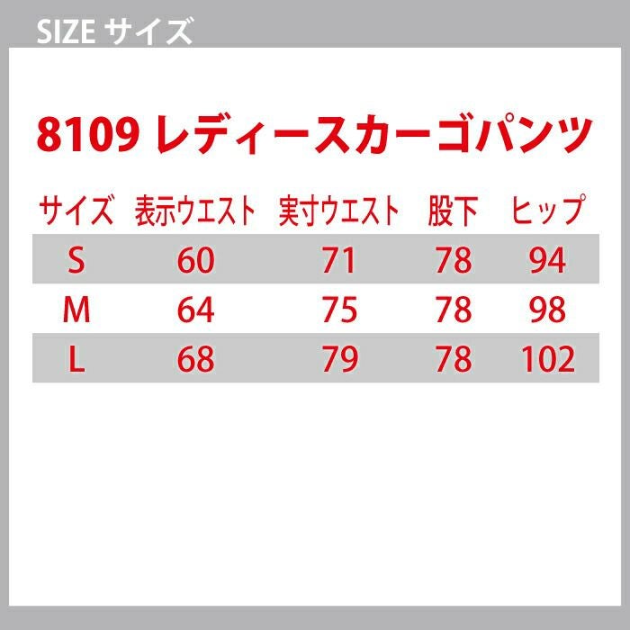 バートル BURTLE 作業着 作業ズボン 6109 レディースカーゴパンツ 5L 作業服 春夏