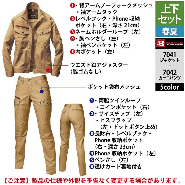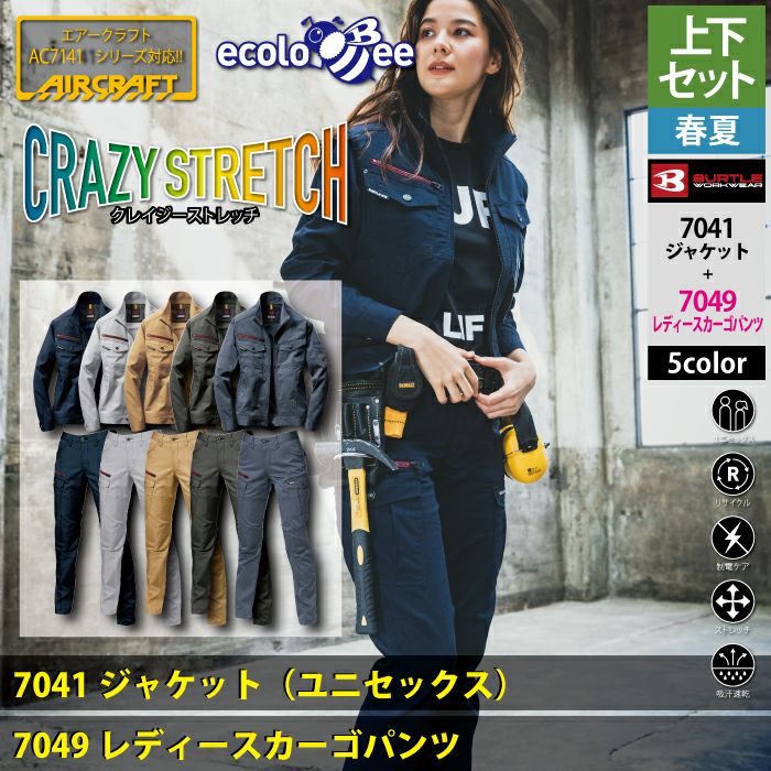 作業服 作業着 バートル ブルゾン 春夏用 バートル BURTLE 作業着 上下セット 7041 ジャケット と 7049 レディースカーゴパンツ S-LL 作業服 おしゃれ 春夏