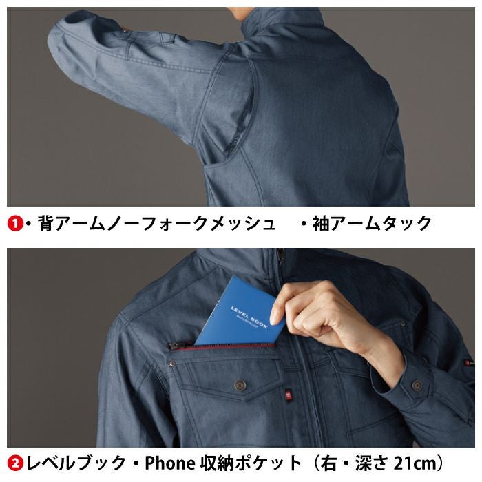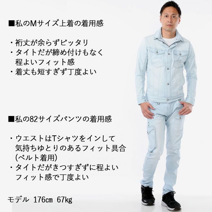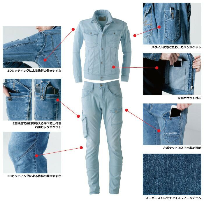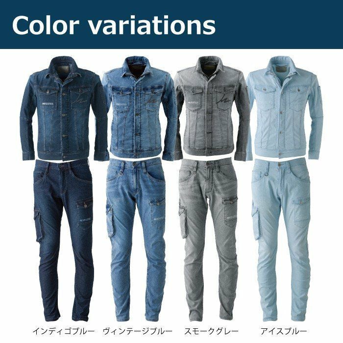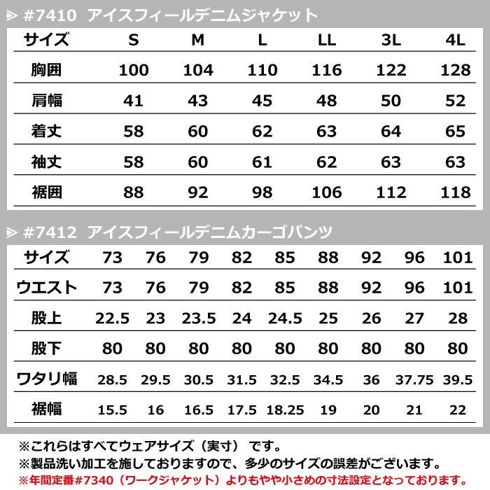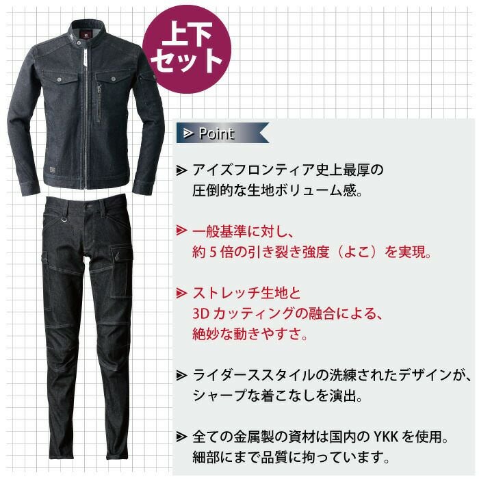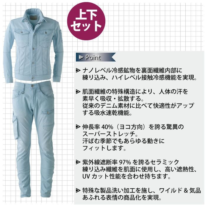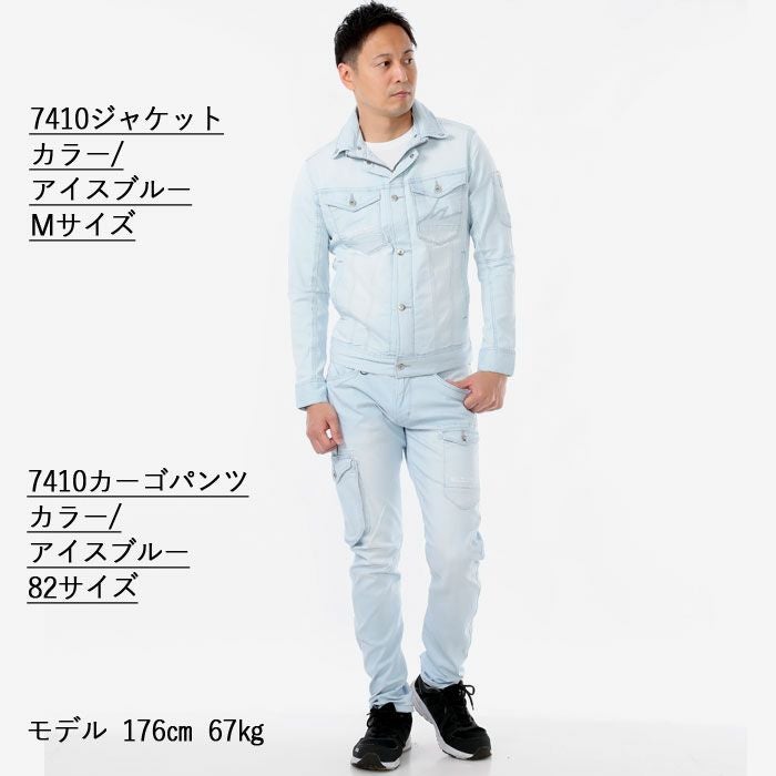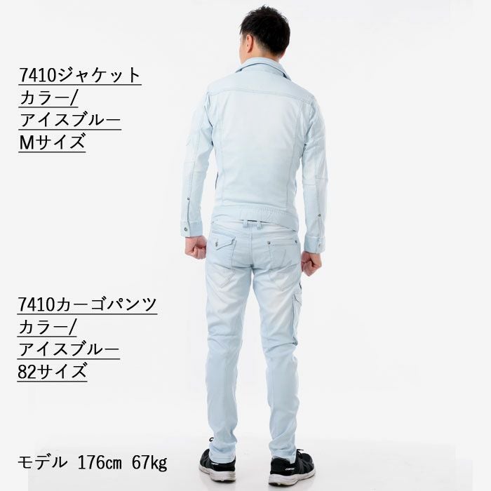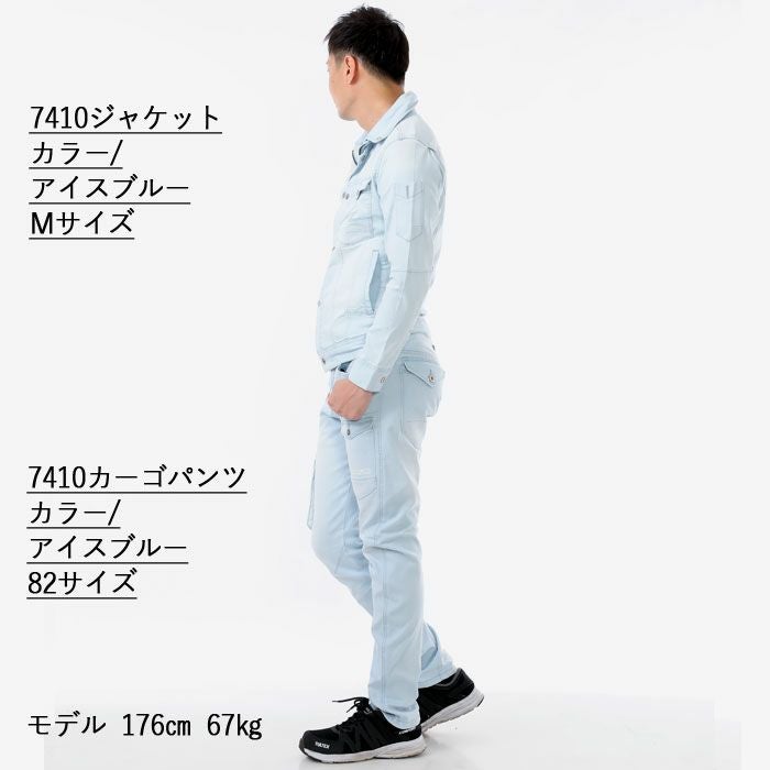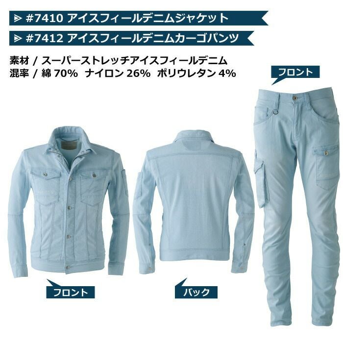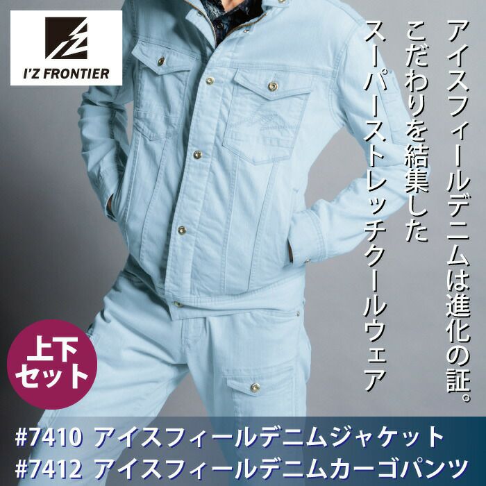 かっこいい オシャレ アウトドア クール アイズフロンティア 作業服 上下セット 7410 ジャケット と 7412 カーゴパンツ ストレッチ アイスフィール デニム 冷感 細身 タイト 春夏