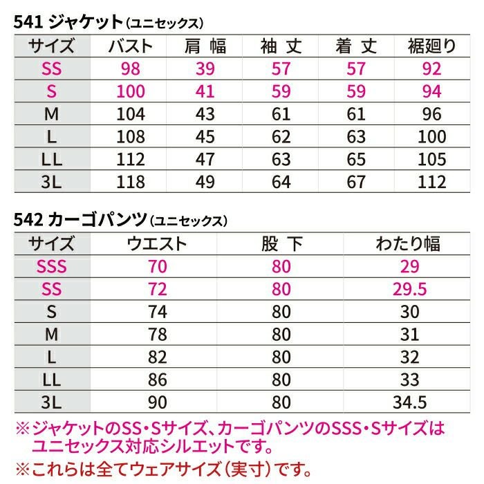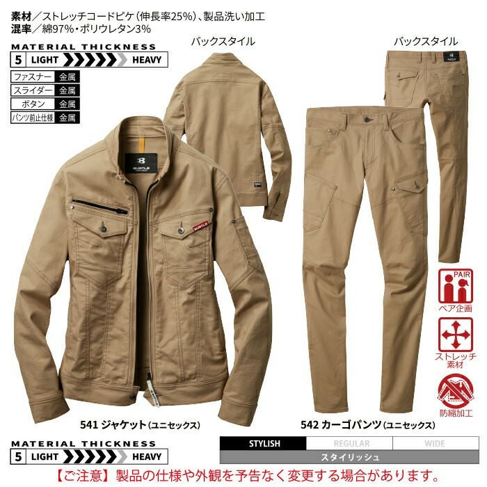 バートル BURTLE 作業着 上下セット 541 ジャケット と 542 カーゴパンツ SS-LL 作業服 おしゃれ 秋冬