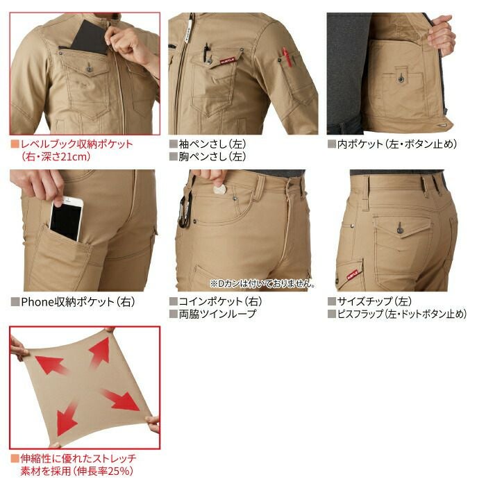 アイズフロンティア 作業服 上下セット 9110 ジャケット と 9112 カーゴパンツ ストレッチ 3Dパターン 春夏秋冬 発熱 防風 細身