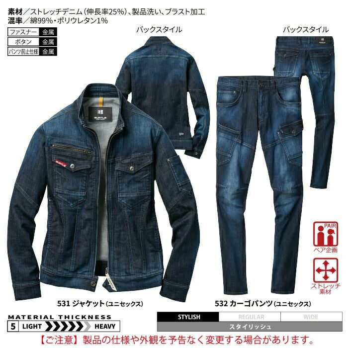 作業服 作業着 バートル ブルゾン 秋冬用 バートル BURTLE 作業着 上下セット 531 ジャケット と 532 カーゴパンツ SS-LL 作業服 おしゃれ 秋冬